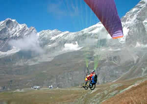 Parapendio in Valle d'Aosta A margine dell'esperienza toscana di Raffaello Belli segnaliamo la valdostana Fans de Sport di Breuil (Cervinia), associazione sportiva aperta a tutti, che offre anche ai disabili l'opportunita' di volare in parapendio in tutta sicurezza, grazie all'uso di una speciale poltrona studiata appositamente per questo scopo. L'associazione inoltre e' in grado di organizzare degli eventi incentivanti ove le persone con disabilita' potranno mettersi alla prova in varie altre discipline, come l'equitazione, la guida di quad, il tiro con l'arco, l'arrampicata su muro artificiale, immersioni ed altro ancora.