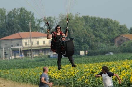 Sebastian attaccato di peso ed i ragazzi disposti in fila che mi aiutavano nella corsa spingendomi a turno. Decollo perfetto, uno stacco deciso e siamo in aria. Sebastian e' come impazzito. Dice parole e frasi di gioia assoluta e a me.... viene il nodo alla gola. Ne valeva la pena....cavolo se ne valeva la pena. Mi dice che quello e' il momento piu' bello della sua vita ,ed io, noto per la mia grazia da 'cinghiale', mi sciolgo come un gelato al sole. Lo tengo su piu' che posso sfruttando al m